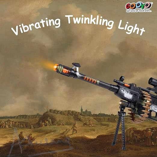 Gooyo GY-8626 Revolving Machine Gun Toy with Stand and Carry Strap, Flashing Lights & Sound Effect | Army Printed/Multi Color, Power Source: 3xAA Battery (Not Included)