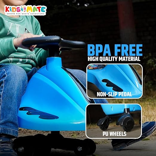 Kidsmate Drift Swing Car for Kids - Ride-On Toy with PU Wheels, Non-Slip Pedals, and 360° Rotating Steering for Easy Navigate The Car for Ages 3 and Up - Blue