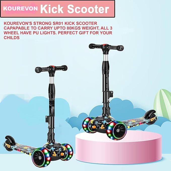 Sturdy Construction :- KOUREVON With its slip deck design and sturdy frame, this 3-wheel scooter offers stability and safety for young riders.