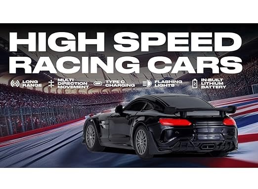 Popsugar Remote Control Car | Mini High Speed Car | 2.4GHz Remote | Rechargeable Lithium Battery | C-Type Charge | Working Headlights | Best Gift for Kids | Made in India,Black