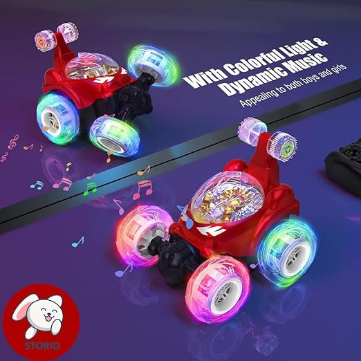 Storio Rechargeable Remote Control Rotating Rolling Stunt RC Car Toys for Kids Off Road Vehicle Toy Cars Kids Monster Truck Rock Climbing Car Toy (Random Colours)