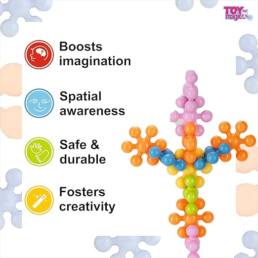 ToyMagic Star Interlink Construction Play - 500 Pcs | Large STEM Building Blocks Set for Kids | Interlocking Educational Toy for Boys & Girls Age 3+ | Enhances Problem-Solving & Creativity