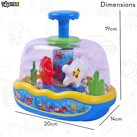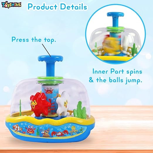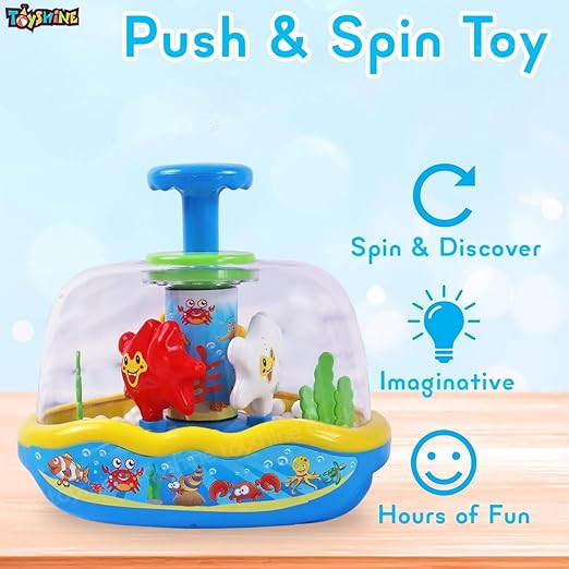 Easy To Play: Push the head of toy and see the different colored spinning balls and the fish going back and forth with teeter totter! This fun toy will keep your children engaged for hours. This toy is designed for ages 12 months and up. The Star Fish is easy to grip and press down.