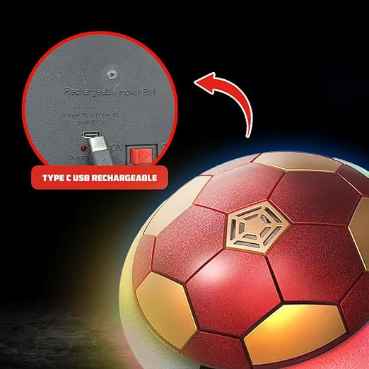 Wembley C-Type USB Rechargeable Battery Powered Hover Football Indoor Electric Floating Hover Ball Soccer | Smart Air Football | Fun Game for Kids Toys for Boys and Girls Birthday Gift - Red & Golden