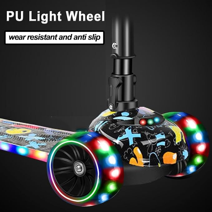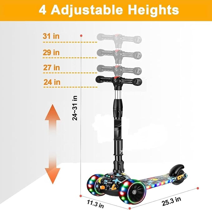 4 Adjustable Heights:- Our graffiti scooter has 4 adjustable heights .Suitable for 3-20 years old toddlers,boys and girls.